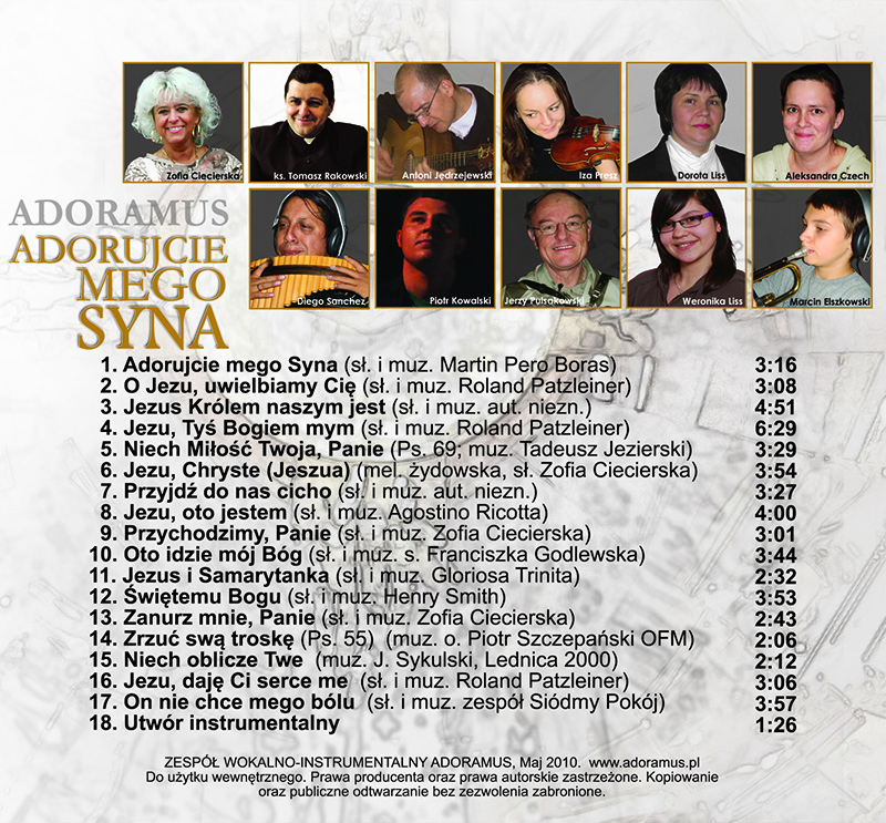 Z wielką radością informujemy, że pod koniec maja br. ukazała się najnowsza, czwarta płyta zespołu Adoramus. Płyta nosi tytuł \"Adorujcie Mego Syna\".